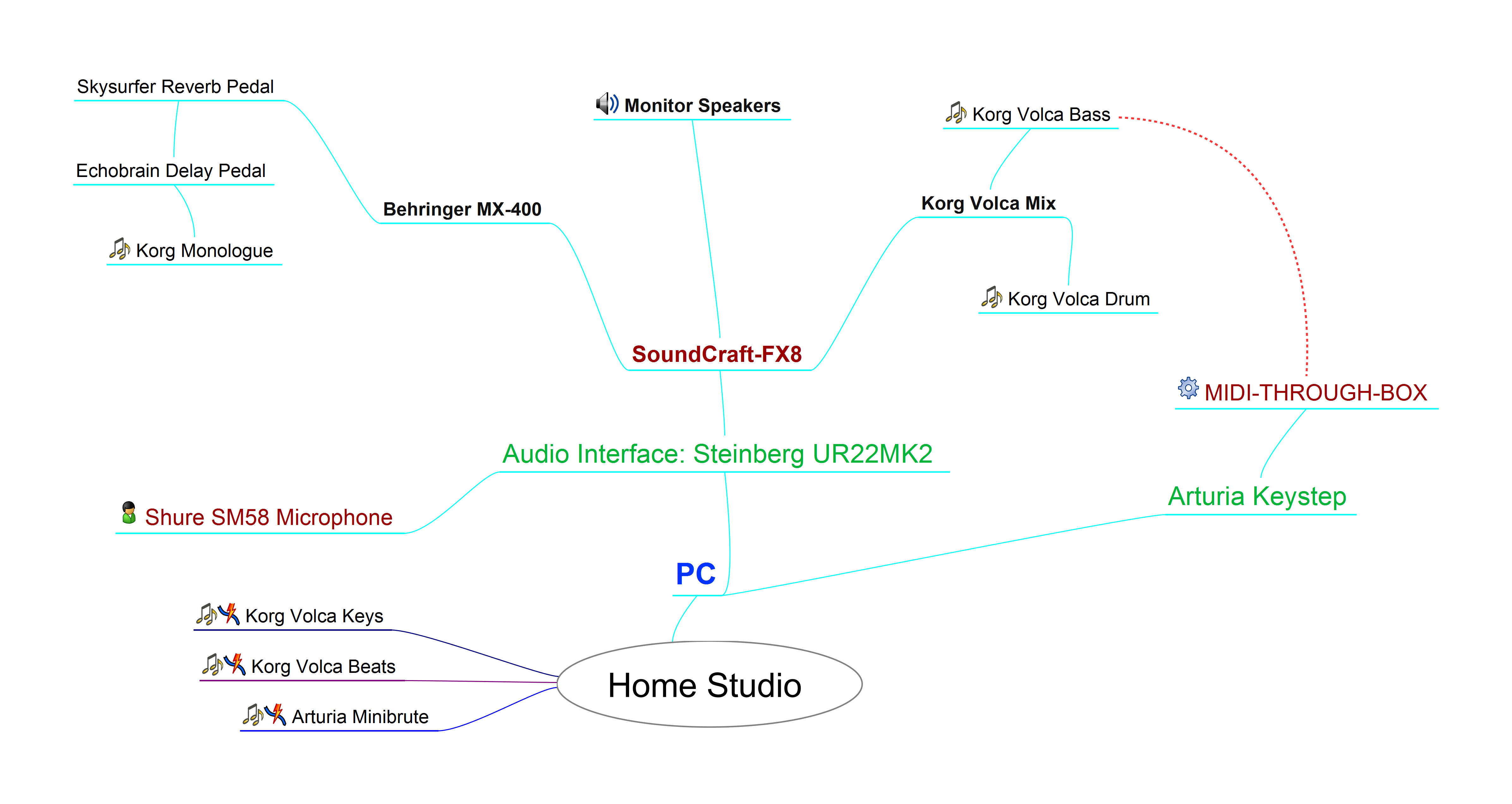 This is a small dream come true and it's pretty much self explanatory so there is a map of my current recording setup: